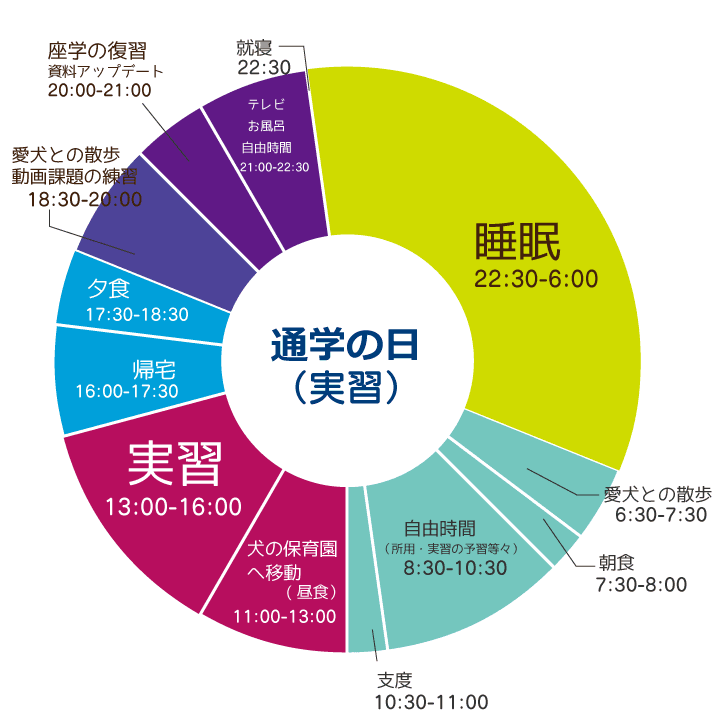 実習を中心にしながらも、家庭や愛犬との時間を大切にした一日です。